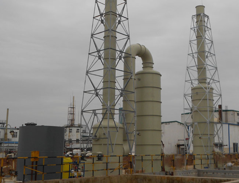 吹脫后的氨氣隨后進入氨氣吸收凈化塔,在些塔內(nèi)使氨氣與吸收液產(chǎn)生化學反應,可使氣體達標排放、無污染。